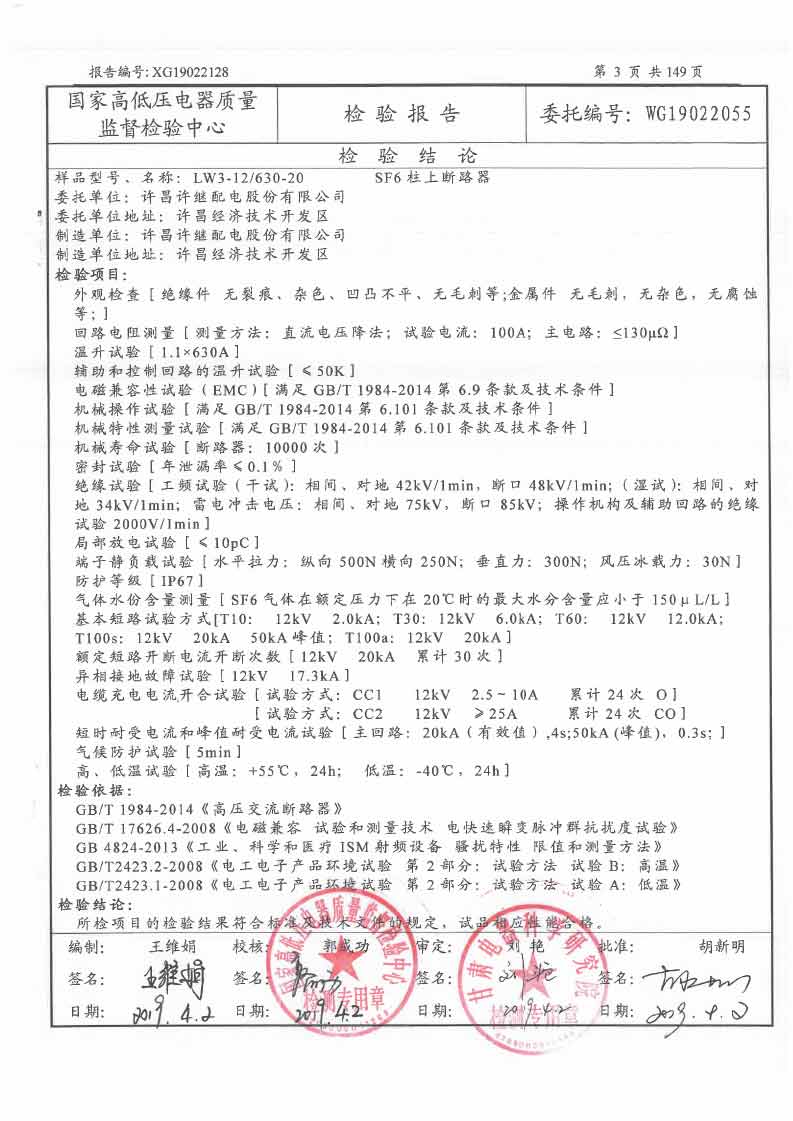 SF6柱上断路器电科院融合报告