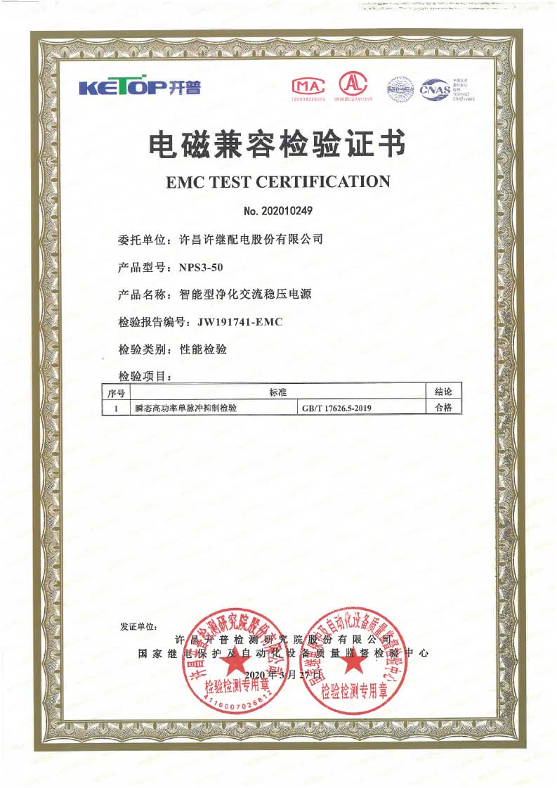 智能净化稳压电源测试17626. 7项报告 证书JW200701
