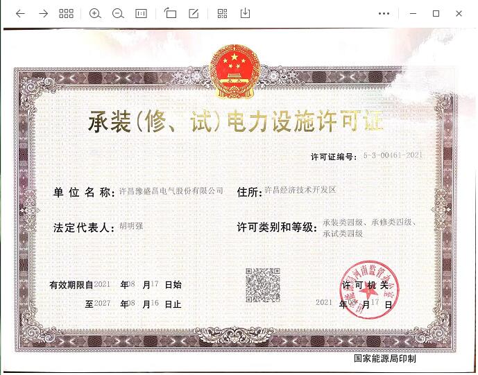 豫盛昌电气—被评为2018年优秀A级纳税人奖