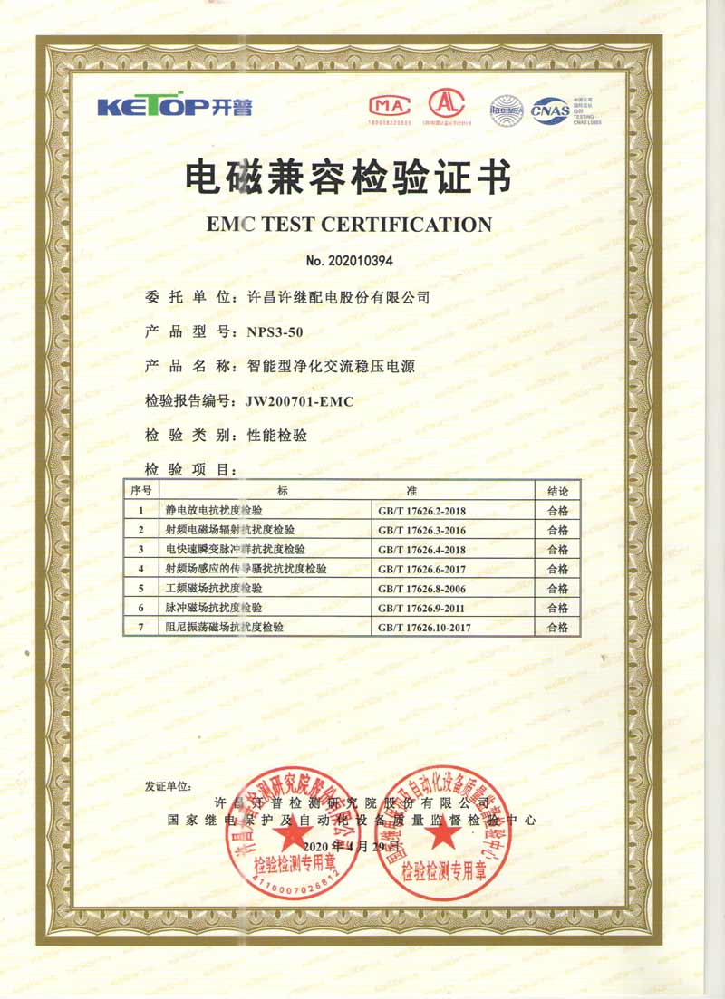 智能净化稳压电源测试17626.5报告 证书JW191741